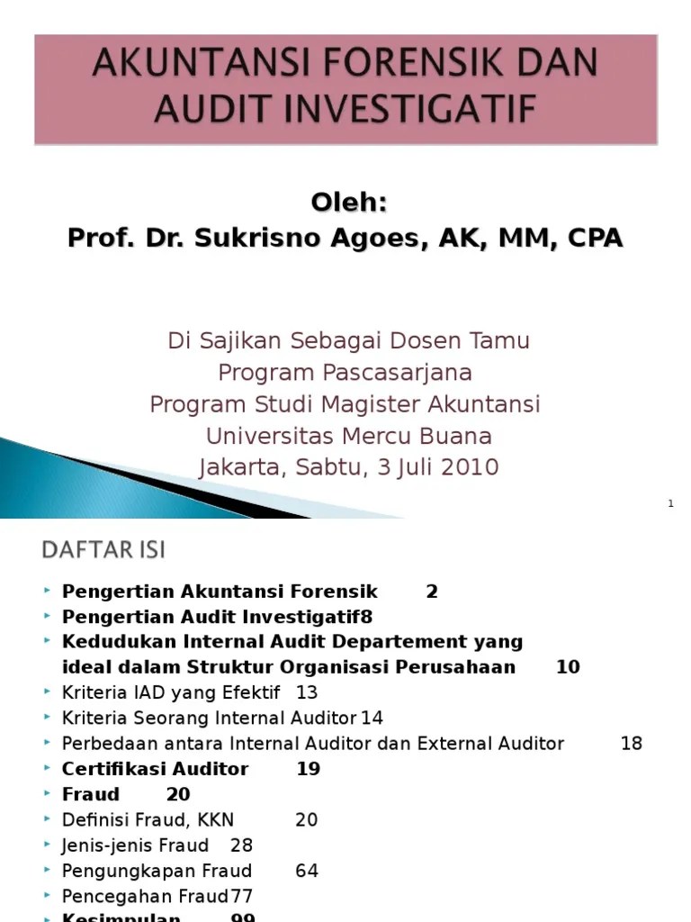 Buku akuntansi forensik dan audit investigatif karangan theodorus m. Rangkuman materi kuliah akuntansi forensik dan audit investigatif toufan t.a. Use get form or simply click on the template preview to open it in the editor. Akuntansi forensik dan audit investigatif. Minat terhadap akuntansi forensik dan audit investigatif berkembang pesat, terutama di kalangan aparat penegak hukum dan mahasiswa program profesi akuntansi .