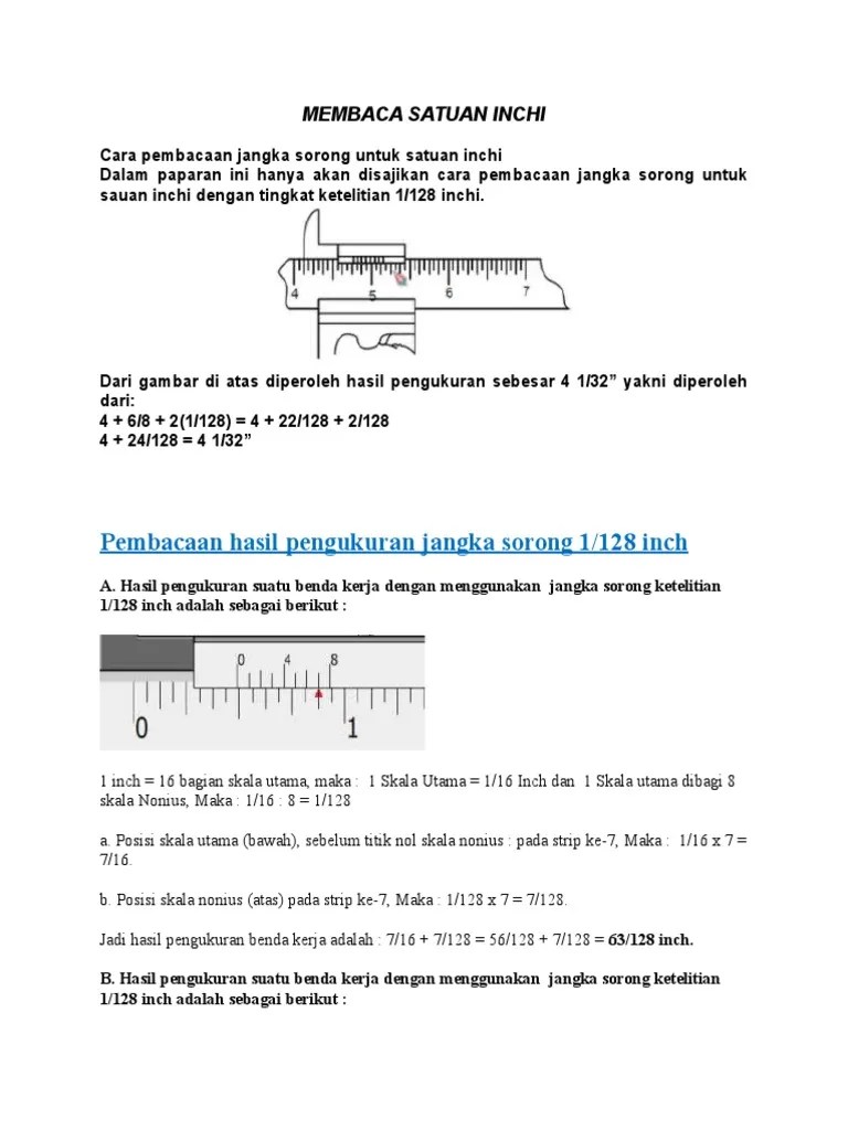 Pada dasarnya, terdapat dua cara untuk membaca skala hasil pengukuran pada jangka sorong yaitu .