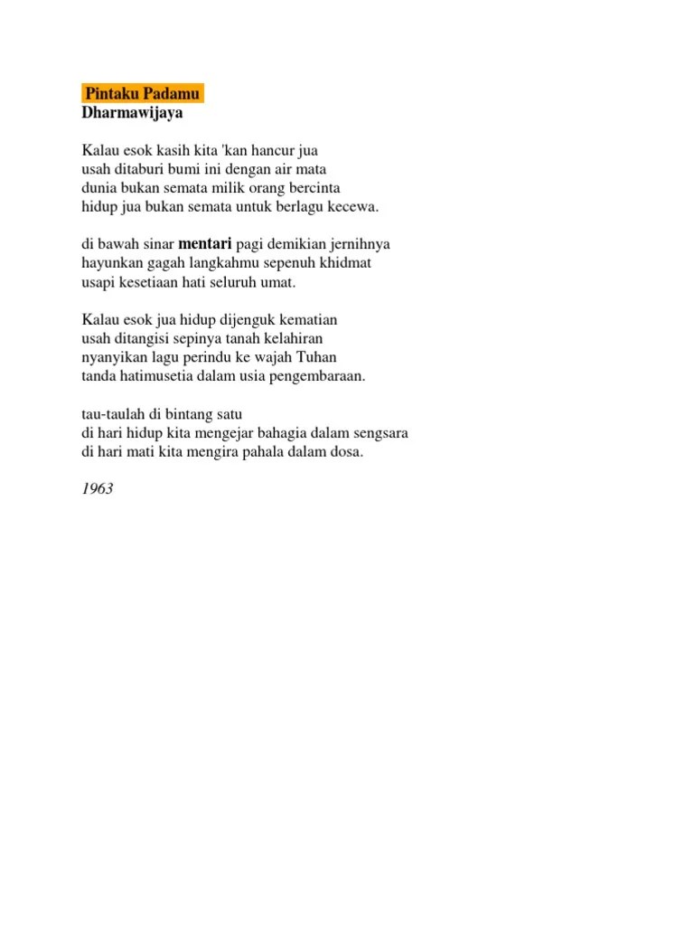 Dan berisi keindahan di bawahnya puisi dari (ronny maharianto) sabda bumi Dalam puisinya berjudul bumi, tiyang alit berusaha mengemas kampanye tentang kerusakan lingkungan lewat kreativitas seni panggung. Namun lingkungan alam disekitar sering kita anggap remeh, keindahan hutan dan laut kita . Karena sudah membuat bumi ini hancur. Pencakar langit, penghujam getir diantara luluh lantak. Puisi bencana alam gempa bumi. Sama dalam menyelesaikan antologi puisi maratap alam, dengan. Maafkan kami atas perbuatan kami. Ya allah kenapa … kau datangkan tsunami ini di palu. Alamku telah rusak · bumi menjerit · keramahan alam hilang · tanpa judul · kami meminta maaf · jeritan nyawa. Tidak sedikit manusia yang menjadikan bumi ini hancur dan rusak. Tentunya rasa syukur tersebut membuat kita tidak dapat mengutarakan nya hanya dengan sebuah kata, melainkan sebuah puisi untuk rasa syukur . Ketidakpedulian manusia pun mulai menyusut.